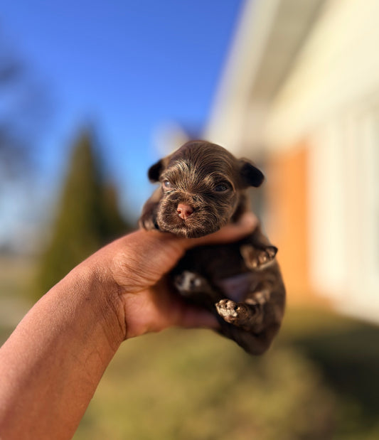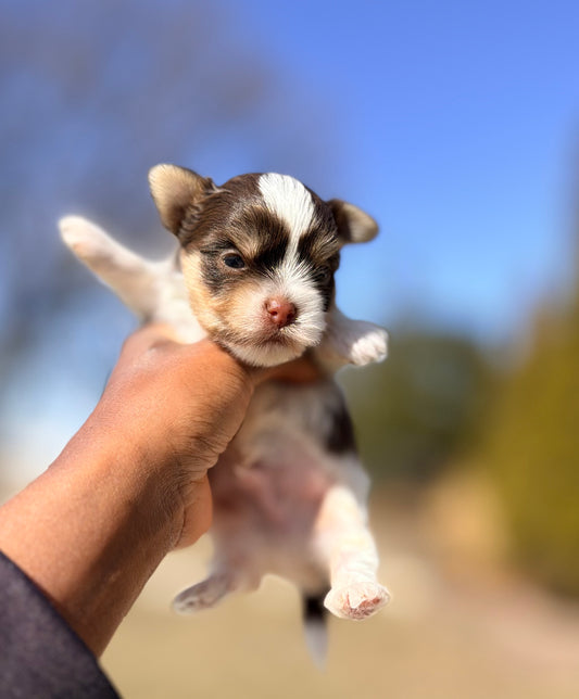 A little bit about us? Our names are Tommie & Coco. Prior to becoming the breeders that we are today Tommie once bred Pitbulls as a teenager. I personally never bred or owned dogs at all. However, one day in 2019 someone mistakenly texted pictures of a Morkie to Tommie’s phone, which I fell in love with! However, someone I missed out the puppy and had to purchase a Maltese and Yorkie in hopes of creating my own. After our first Morkie litter in 2020 I fell in love with breeding and we expanded into what you see today! We have a true passion for breeding and our dogs are our family. We genuinely love them.